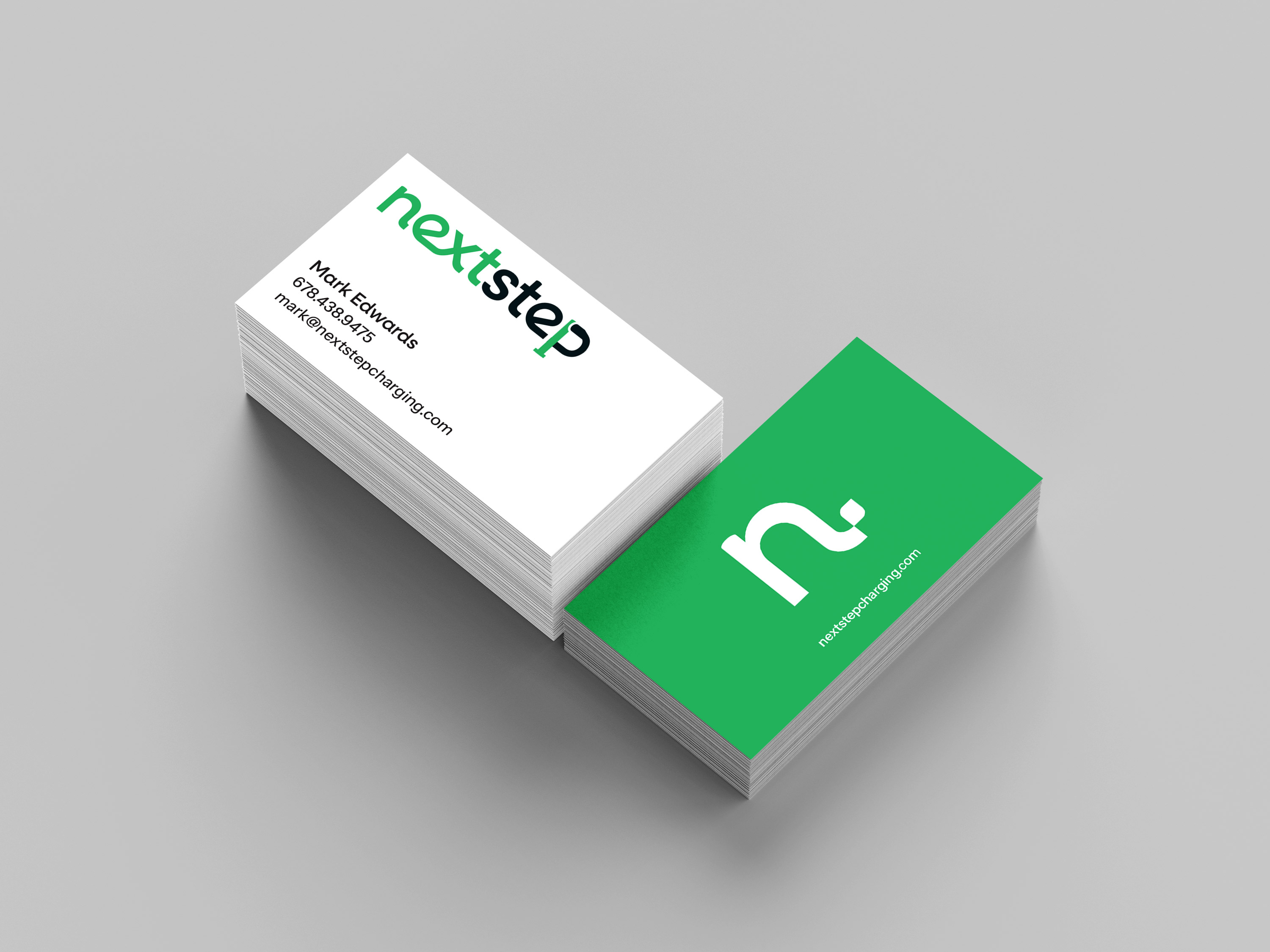 NextStep Charging uses top of the line Tesla Superchargers and infrastructure to provide in-town EV charging stalls to small businesses. Consumers will largely be interacting through Tesla infrastructure and discover it via Tesla publishing charger locations to different services. The stall site/business owners will be the primary audience of the identity and content including website, business cards, and presentations.